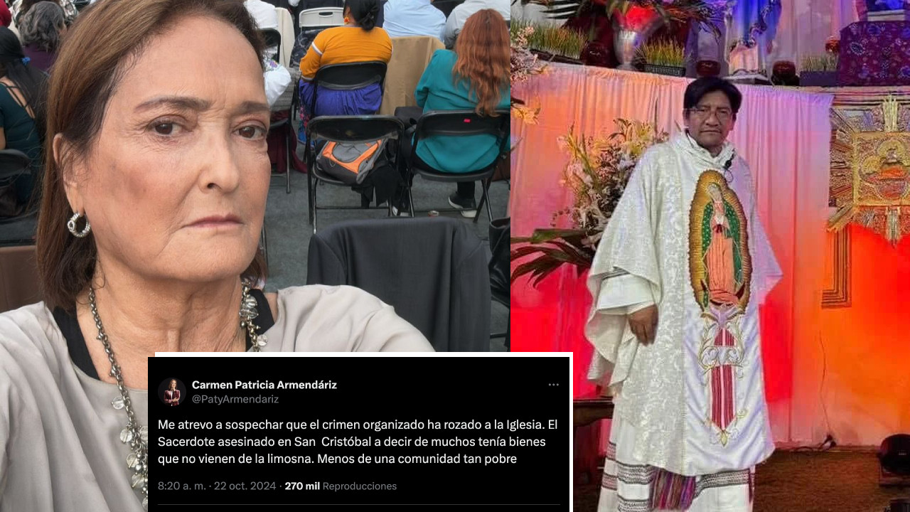 Patricia Armendáriz, diputada federal, refirió que el sacerdote Marcelo Pérez "tenía bienes que no vienen de la limosna", luego de expresar su sospecha sobre la presencia del crimen organizado en la Iglesia.