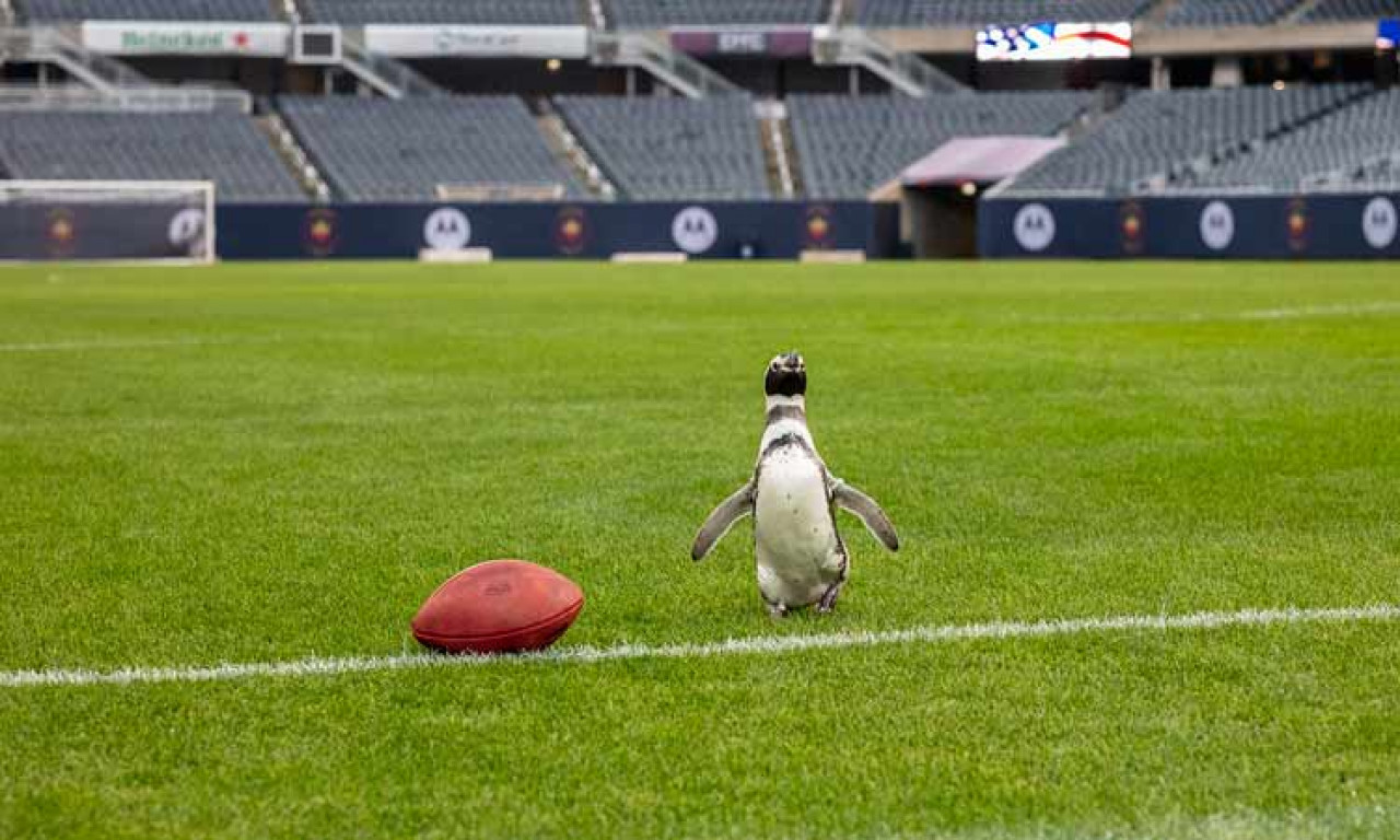 Los pingüinos Charlotte, Darwin, Izzy y Tombo del Acuario Shedd de Chicago tienen una envidiable vida activa, pues sus cuidadores los llevaron a conocer el estadio Soldier Field, hogar de los Osos y del club de fútbol Chicago Fire.