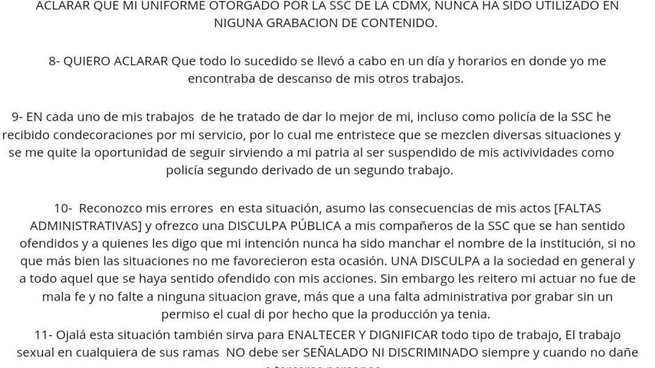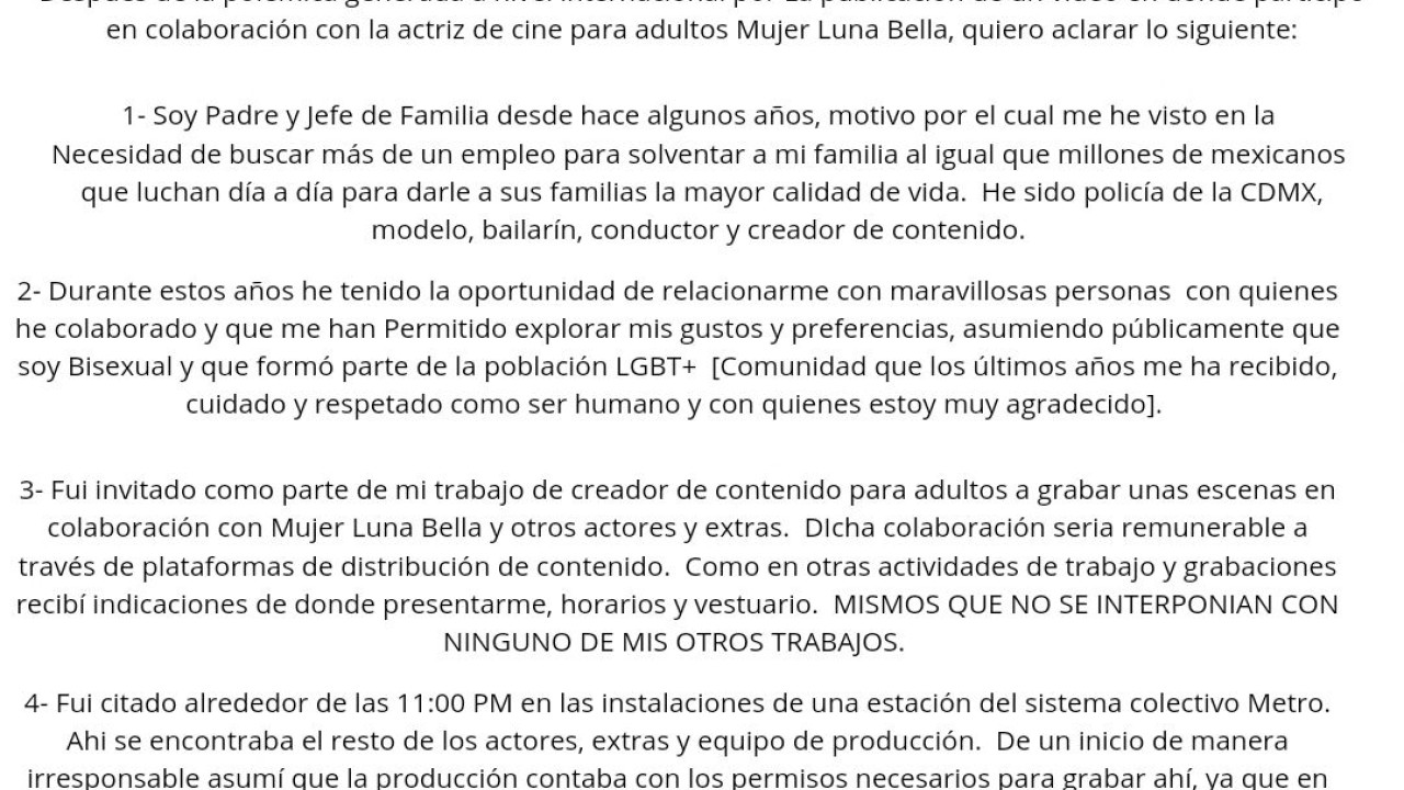 Jorge Luis López Villegas, el policía de la SSC que fue suspendido tras descubrirse que participó en el polémico video del Metro con Luna Bella, pidió una disculpa pública en una carta en su Insta.