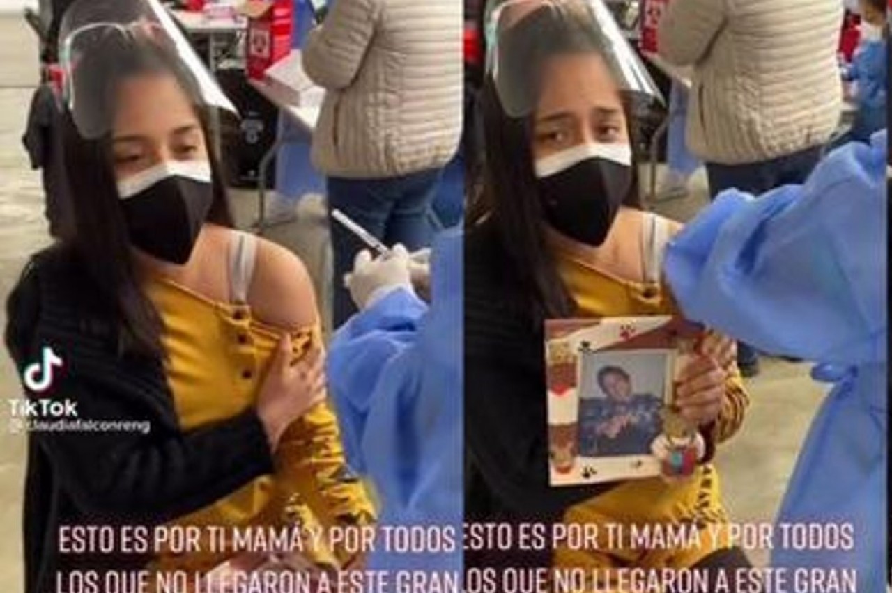 “Daría todo por tenerte de vuelta. Te amo, mamita. Esto es por ti mamá y por todos los que no llegaron a este gran día”, dice entre lágrimas Claudia Falcón en TikTok, mientras sostiene una foto de su “madre” y personal le aplica la vacuna contra Covid-19.