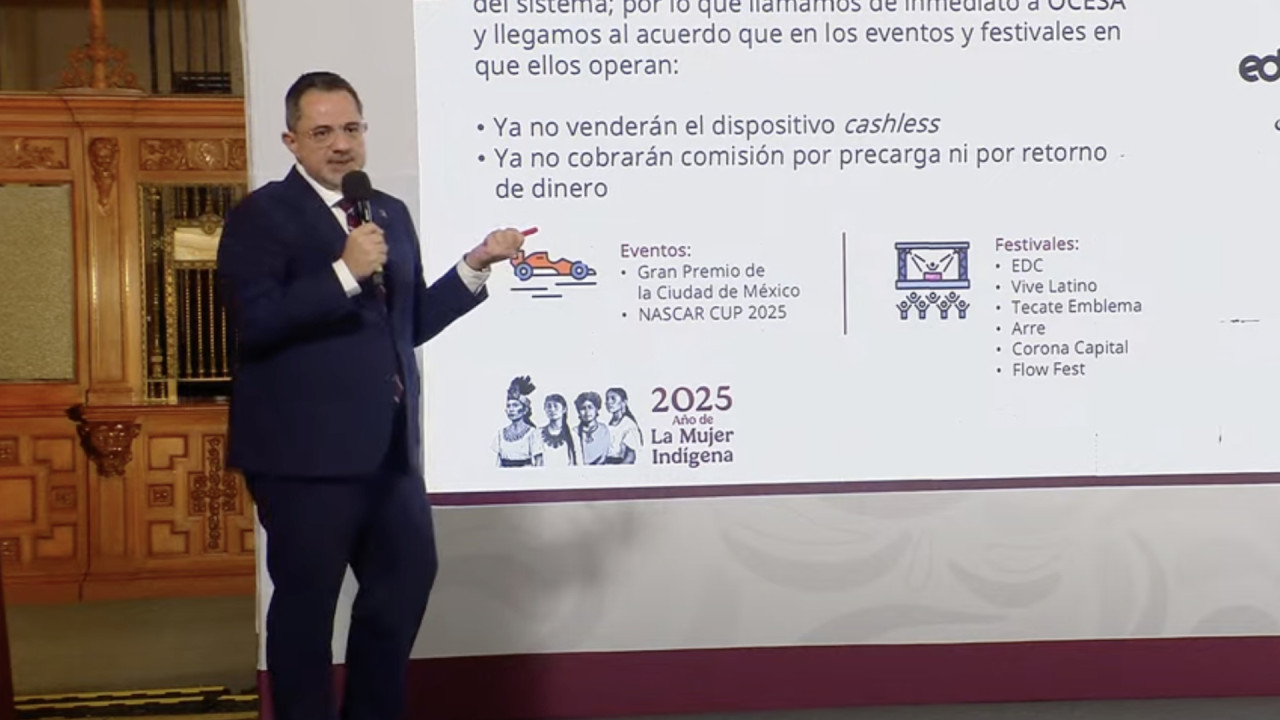Iván Escalante, titular de la Procuraduría Federal del Consumidor (Profeco), anunció este lunes durante la Mañanera del Pueblo, un acuerdo con Ocesa para eliminar el "cashless" en los eventos.