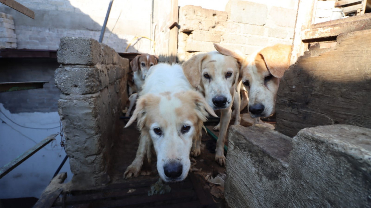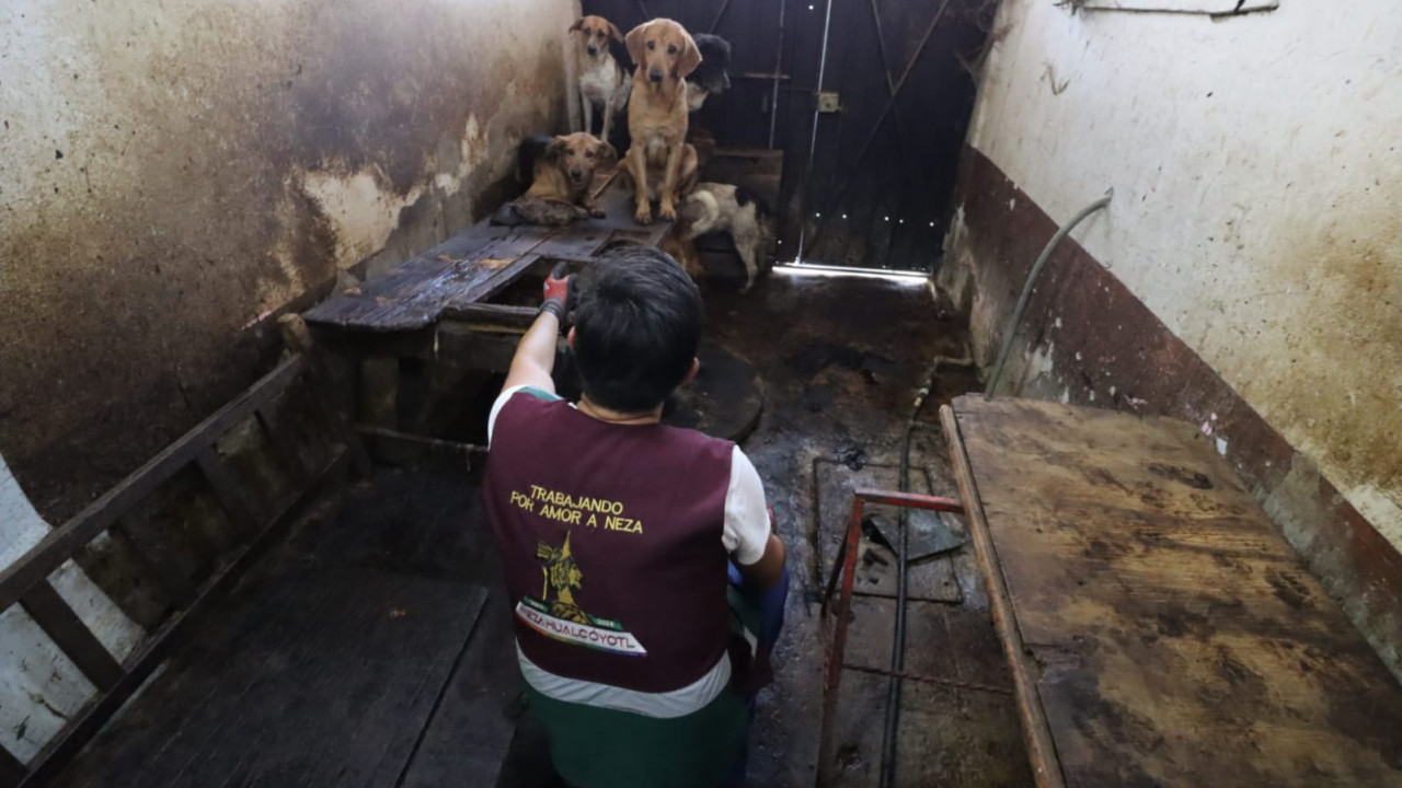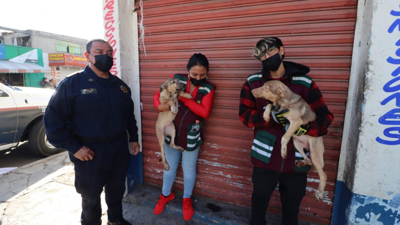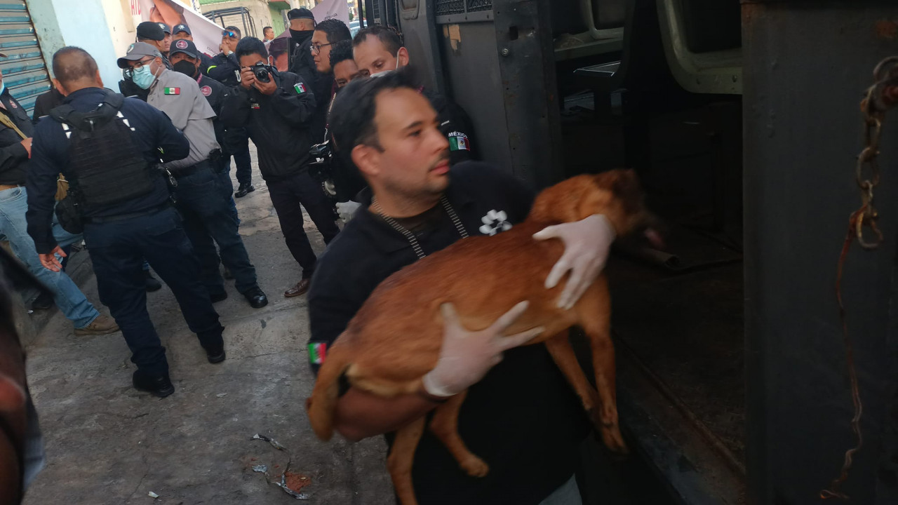 Más de 70 perritos fueron rescatados de un predio, en la colonia Benito Juárez, en Nezahualcóyotl, Estado de México, tras denuncias de vecinos, quienes aseguraron que sus dueños los engordaban para sacrificarlos y comercializar su carne.