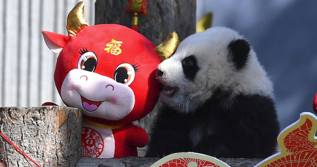 El Centro Chino de Investigación y Conservación del Panda Gigante en la provincia occidental de Sichuan, presentó a 10 cachorros con motivo del Año Nuevo Lunar en una zona de juegos adornada con faroles, nudos tradicionales, autos de cartón, peluches de buey y banderas.