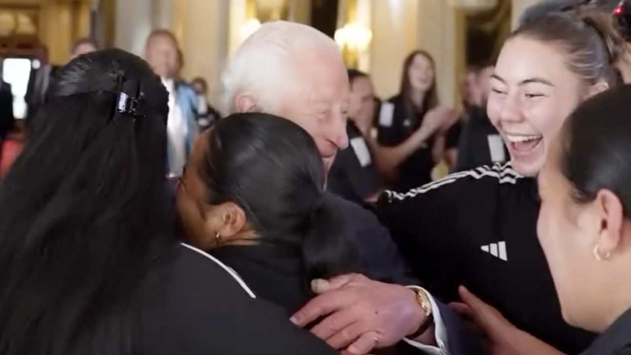 Rey Carlos III rompe protocolo para un abrazo grupal con jugadoras de rugby