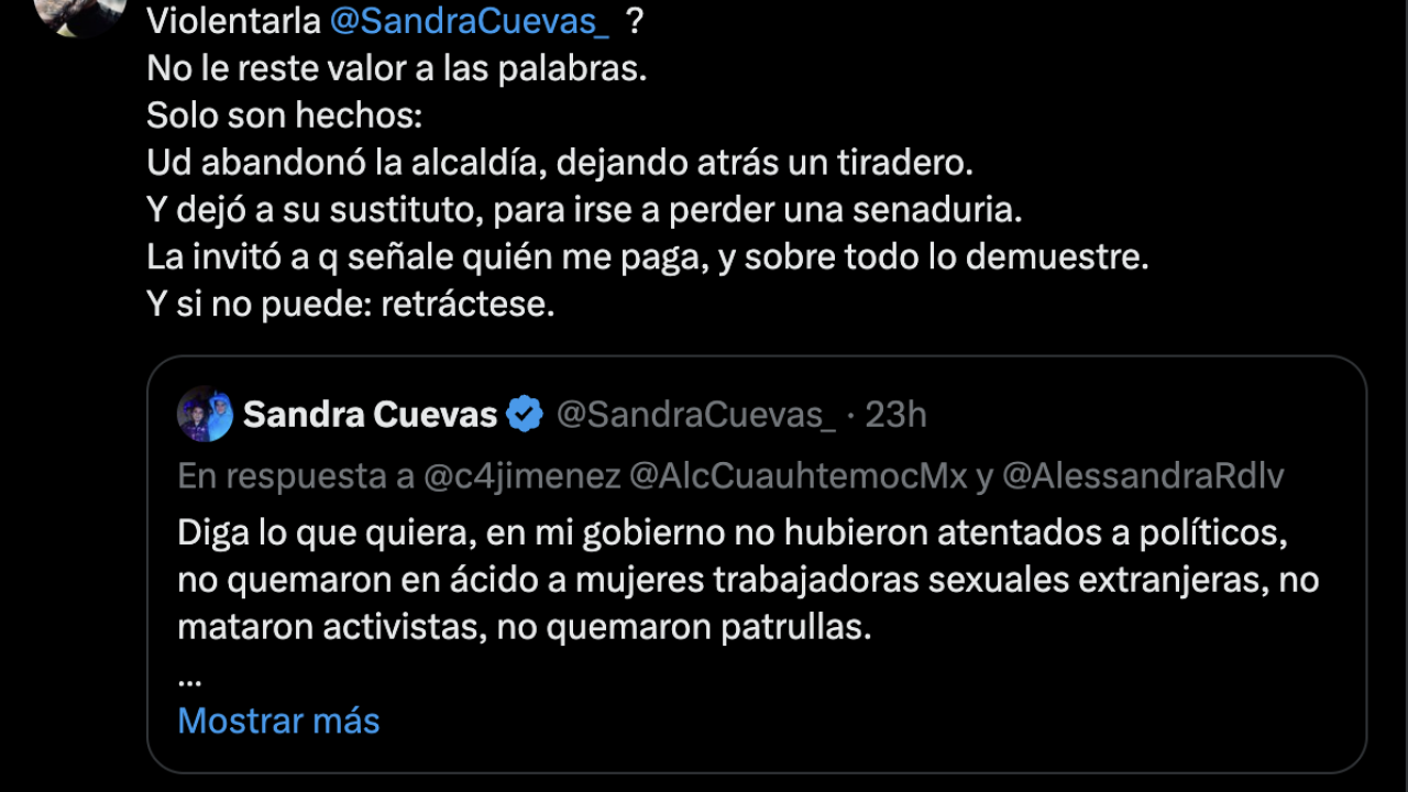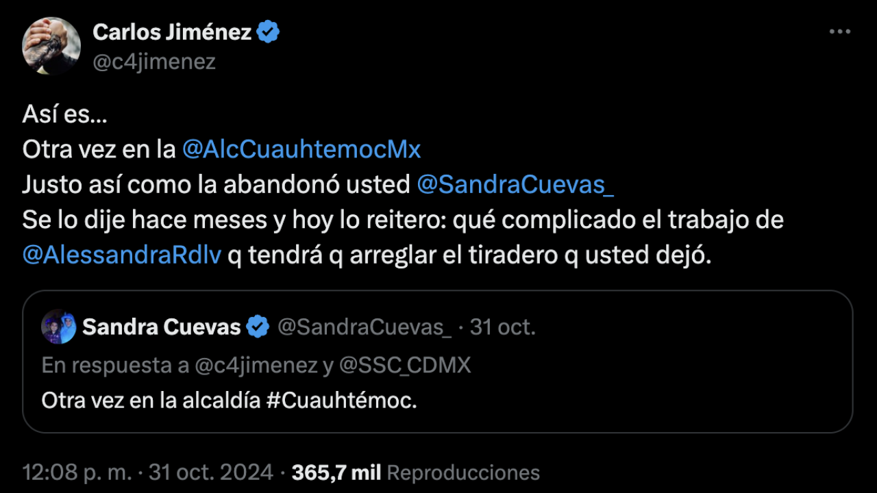 Sandra Cuevas protagonizó tremendo pleito con Carlos Jiménez a través de redes sociales, luego de que el periodista la acusó de dejar un tiradero en la alcaldía Cuauhtémoc.