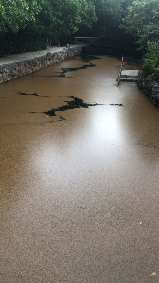 Las redes viralizaron imágenes en las que se observa trabajadores limpiando el alga, que no pudo ser removida en su totalidad.