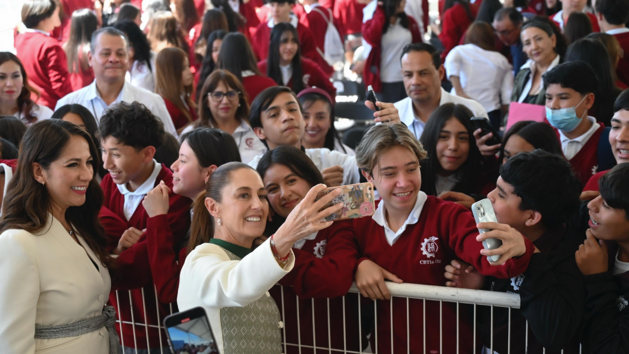 “Hoy lo que les puedo decir es que tienen una Presidenta que está con las y los jóvenes de México y que lo que queremos es que vayan a la escuela, que aprendan en la escuela, ¿Dónde tienen que estar los jóvenes?, pues hay que construir más escuelas, que les guste la educación y a todos aquellos que por alguna razón dejan la escuela, hay que irlos a buscar a su casa para que regresen a la escuela. De esa manera, se va a hacer realidad que la educación sea un derecho para todas y todos los jóvenes de nuestro país”, afirmó.