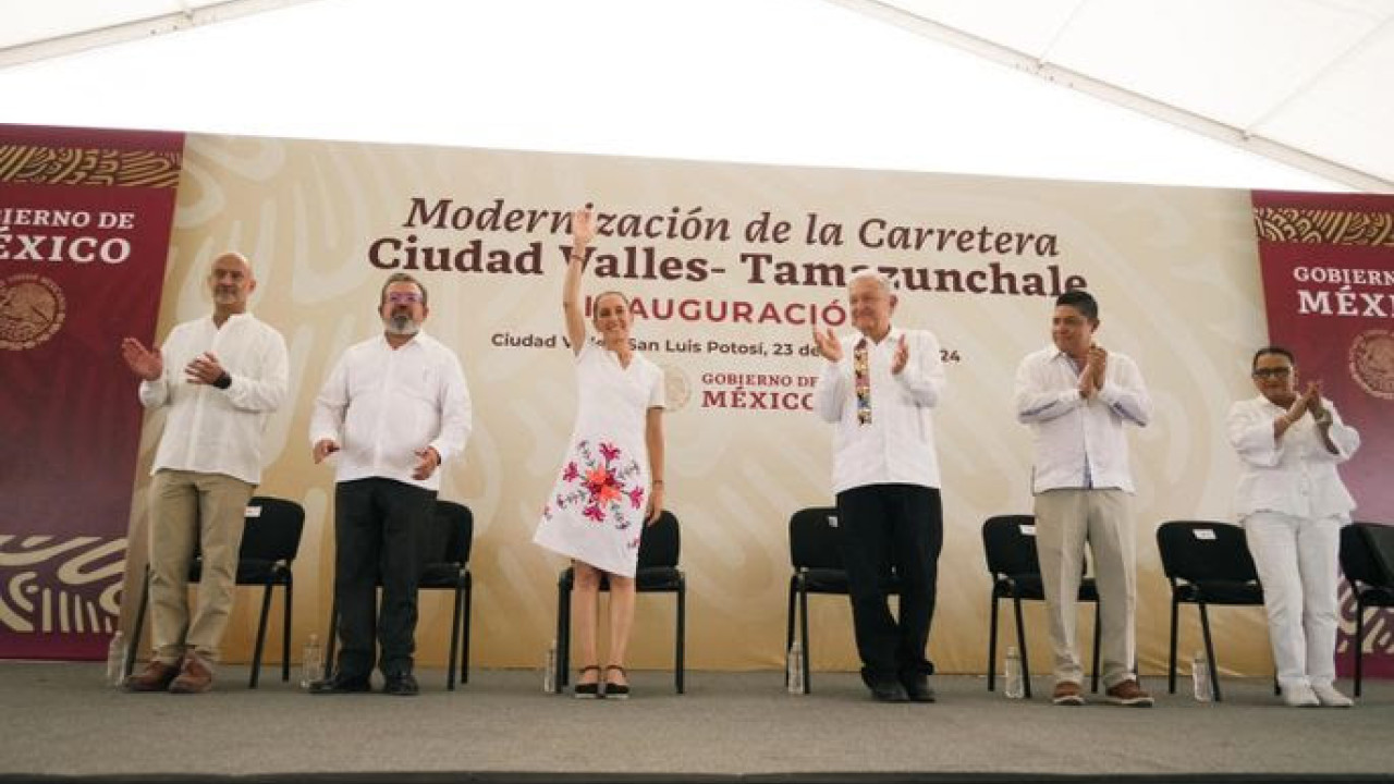 ’’Continuar con la Cuarta Transformación quiere decir seguir apoyando a la Huasteca Potosina, por eso me comprometo con ustedes a que el próximo año iniciamos el aeropuerto de Tamuín. Y que esta carretera la vamos a llevar hasta Huejutla, para que pueda llegar a Pachuca y después a la Ciudad de México, también, nada más que esa la vamos a iniciar más tarde, de Ciudad Valles hasta Tampico, vamos a arreglar esa carretera’’, anunció.