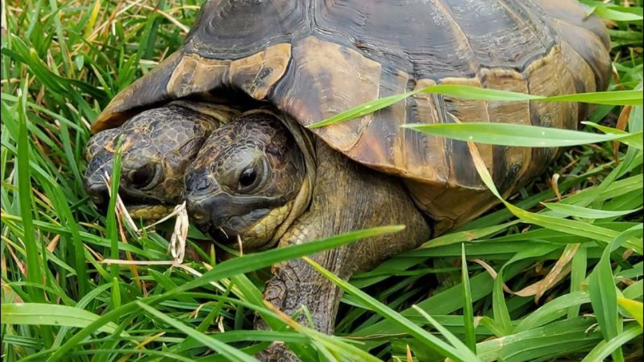 Tortuga bicéfala celebra 25 años con fruta y flores