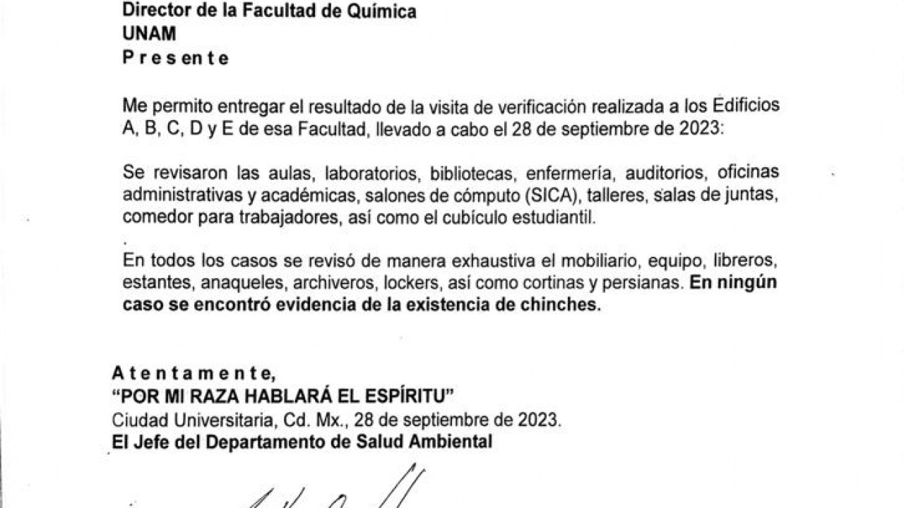 La Facultad de Química de la Universidad Nacional Autónoma de México (UNAM) se volvió viral tras suspender clases este jueves por supuesto caso de chinches.
