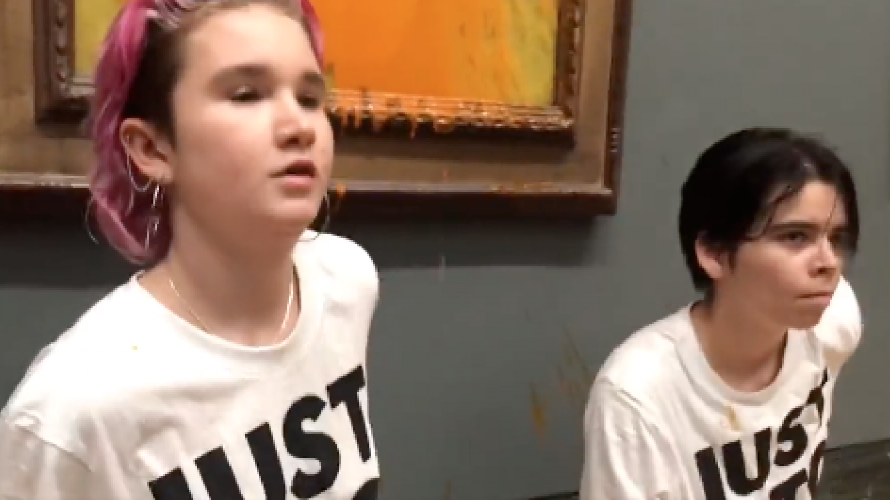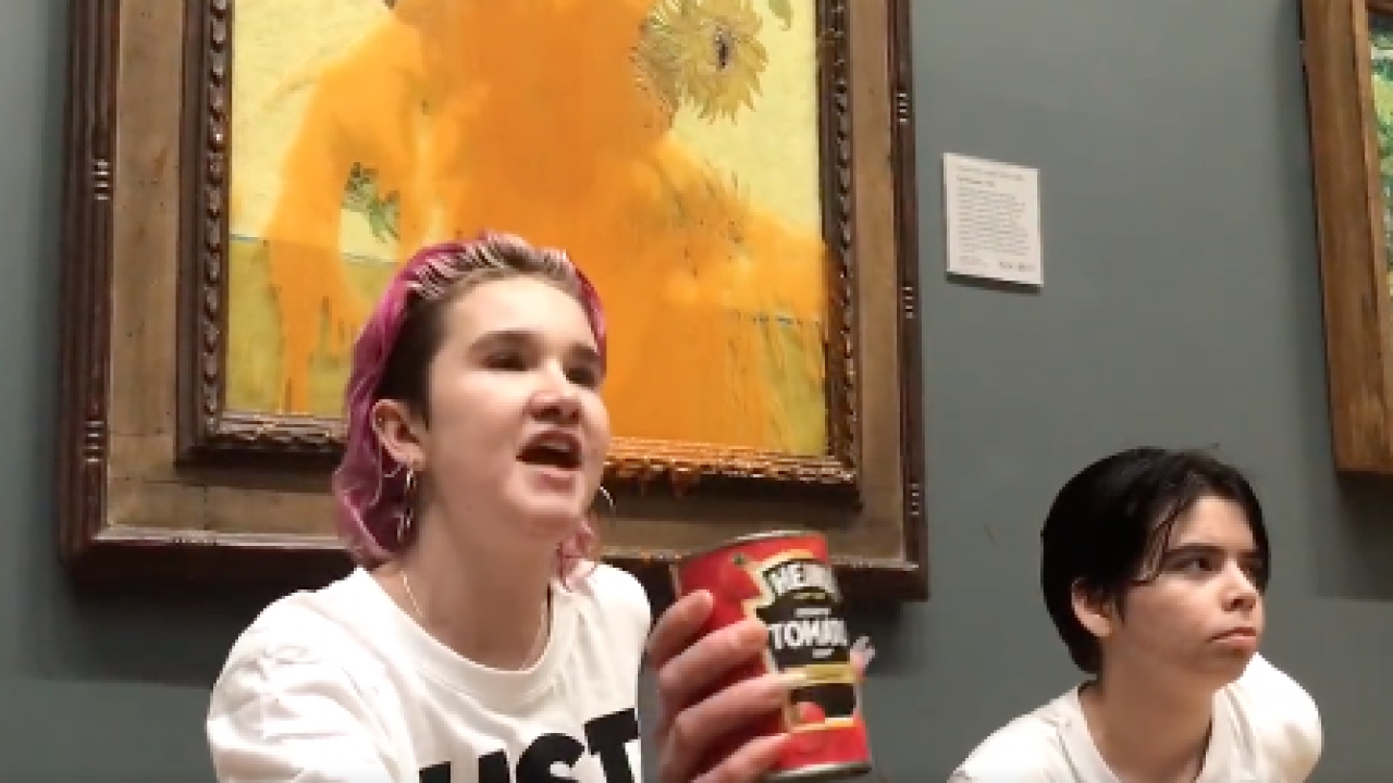 Este viernes, dos mujeres de un grupo activista contra los combustibles fósiles arrojaron sopa de tomate sobre “Los girasoles” de Vincent Van Gogh, exhibido en la Galería Nacional de Londres.
