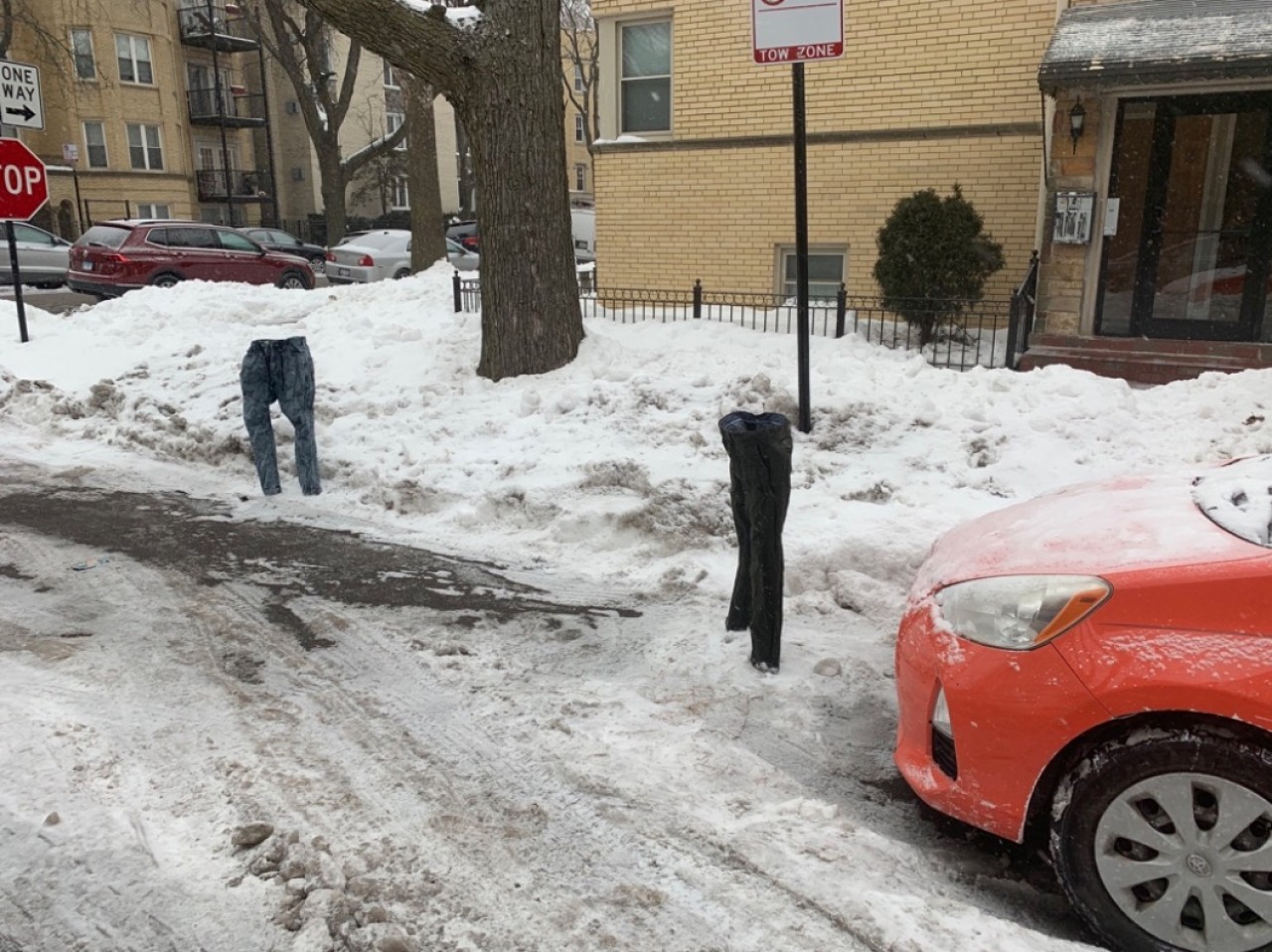 Vecino de Chicago usa pantalones congelados para apartar estacionamiento