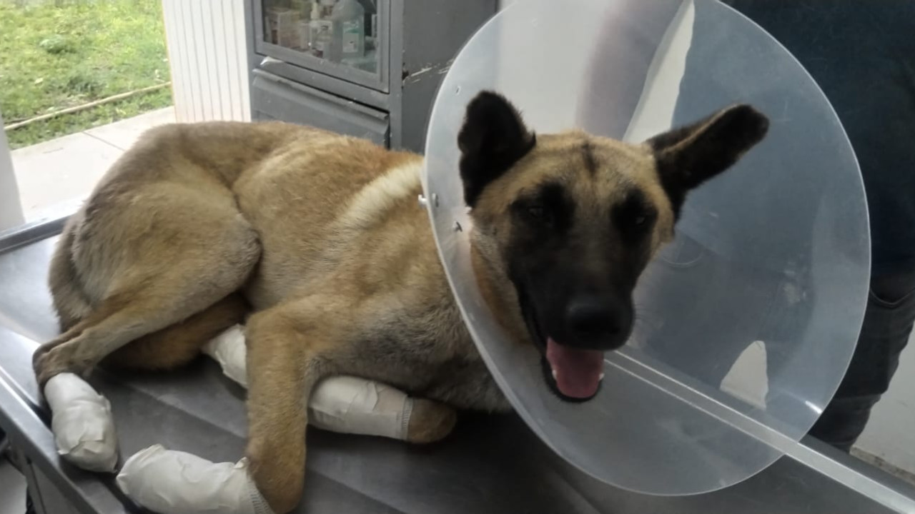 El perrito fue llevado con lesiones en sus patas a la Comisaría Preventiva Municipal donde recibió atención veterinaria.