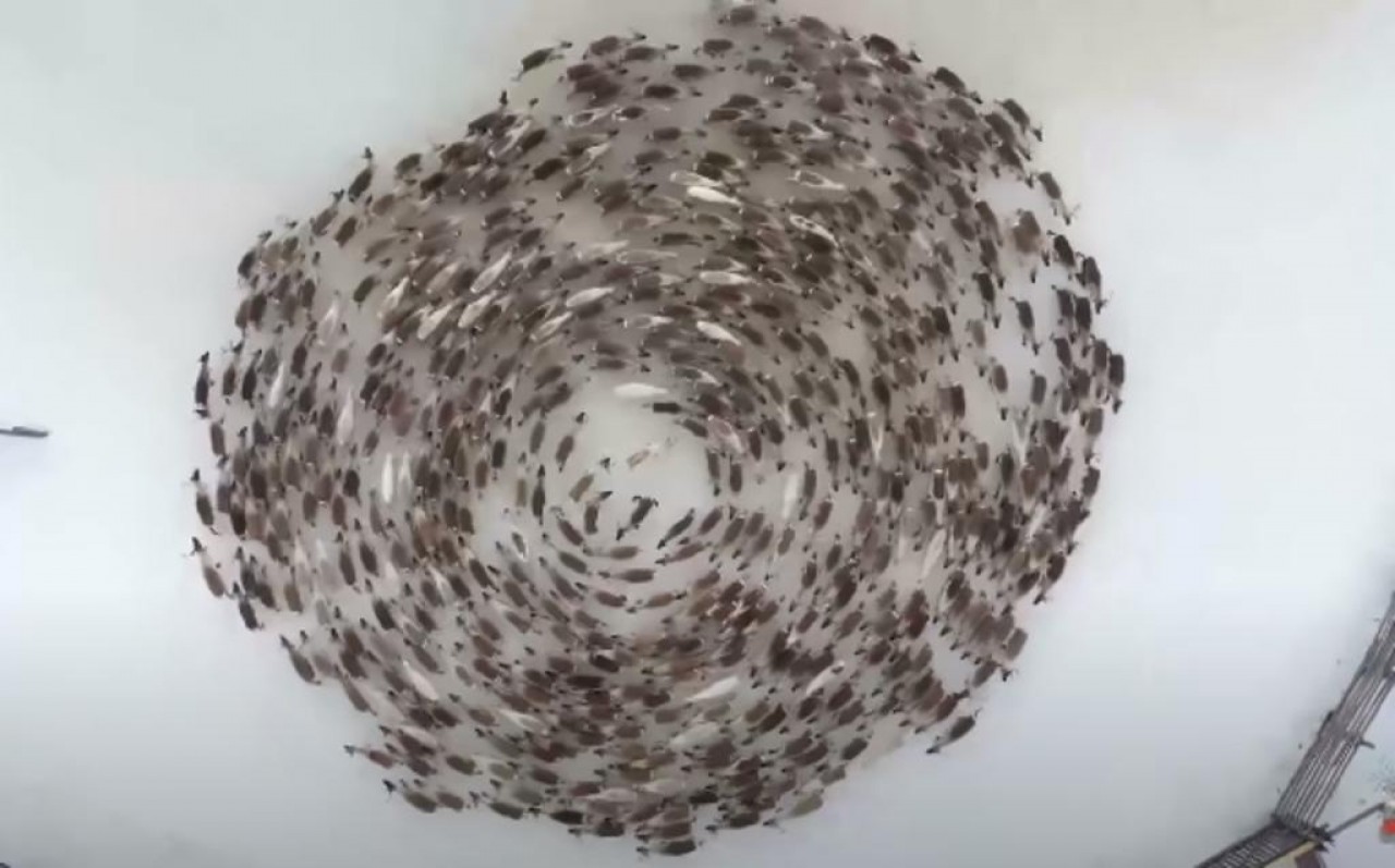 El fotógrafo Lev Fedoséyev captó con su dron el increíble momento en que una manada de renos corren como en un trance hipnótico y forman una espiral, hecho que ocurrió en la provincia de Múrmansk, Rusia.