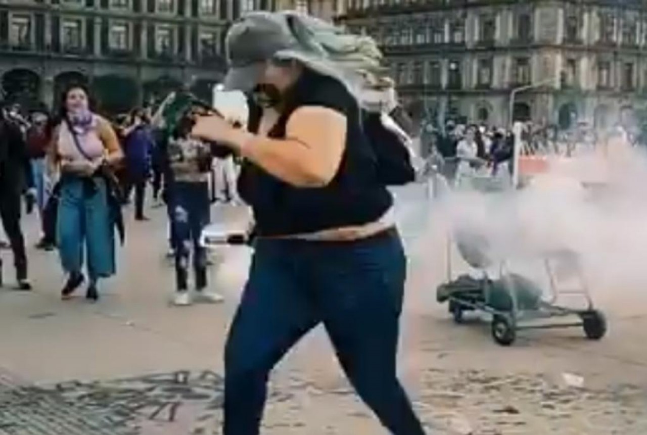 “¡Eso, hermana! ¡Eso, hermana!” coreaban las manifestantes durante la marcha de este lunes en la Ciudad de México, mientras “La Reinota”, como la apodaron, corría a toda velocidad con una bomba de humo en la mano para devolvérsela a los policías que la arrojaron por encima de las vallas.