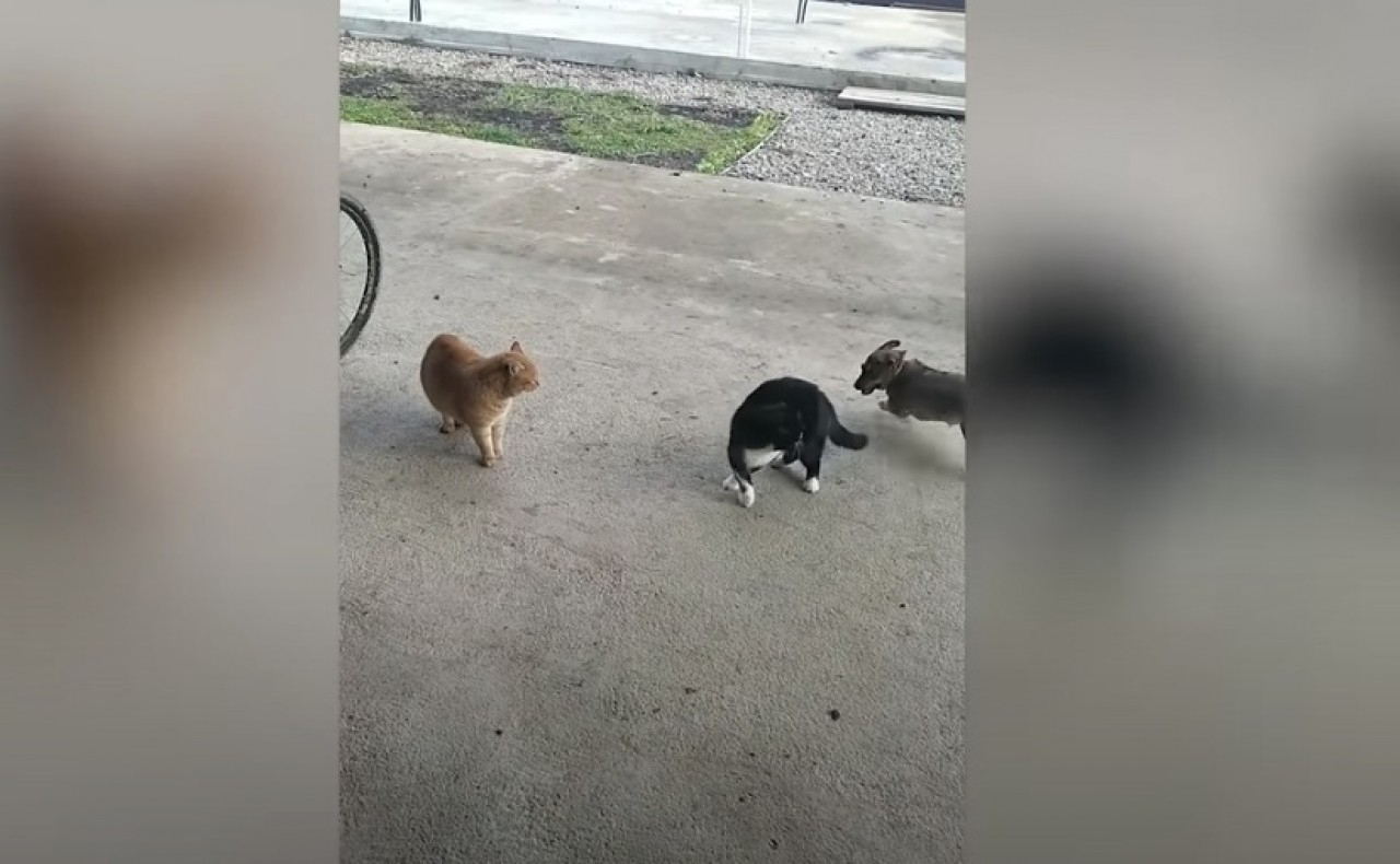 VIDEO. Lomito emocionado quiere detener pelea de michis