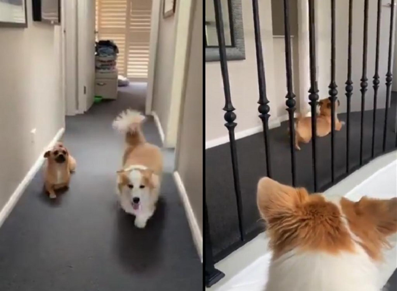 VIDEO. Lomito se burla de amigo corgi por sus patas cortas