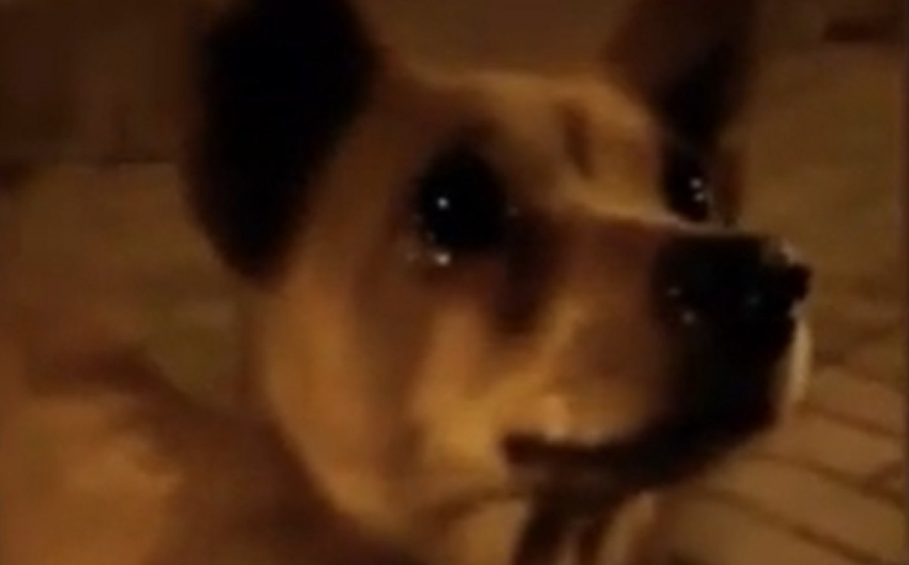 Una mujer se hallaba con sus amigos cerca de un parque de la ciudad prefectura de Jinzhong, China, cuando se percató de un perrito callejero al que decidió darle una salchicha, pero lo que le sorprendió fueron los ojitos brillosos del peludito, como si estuviera llorando.