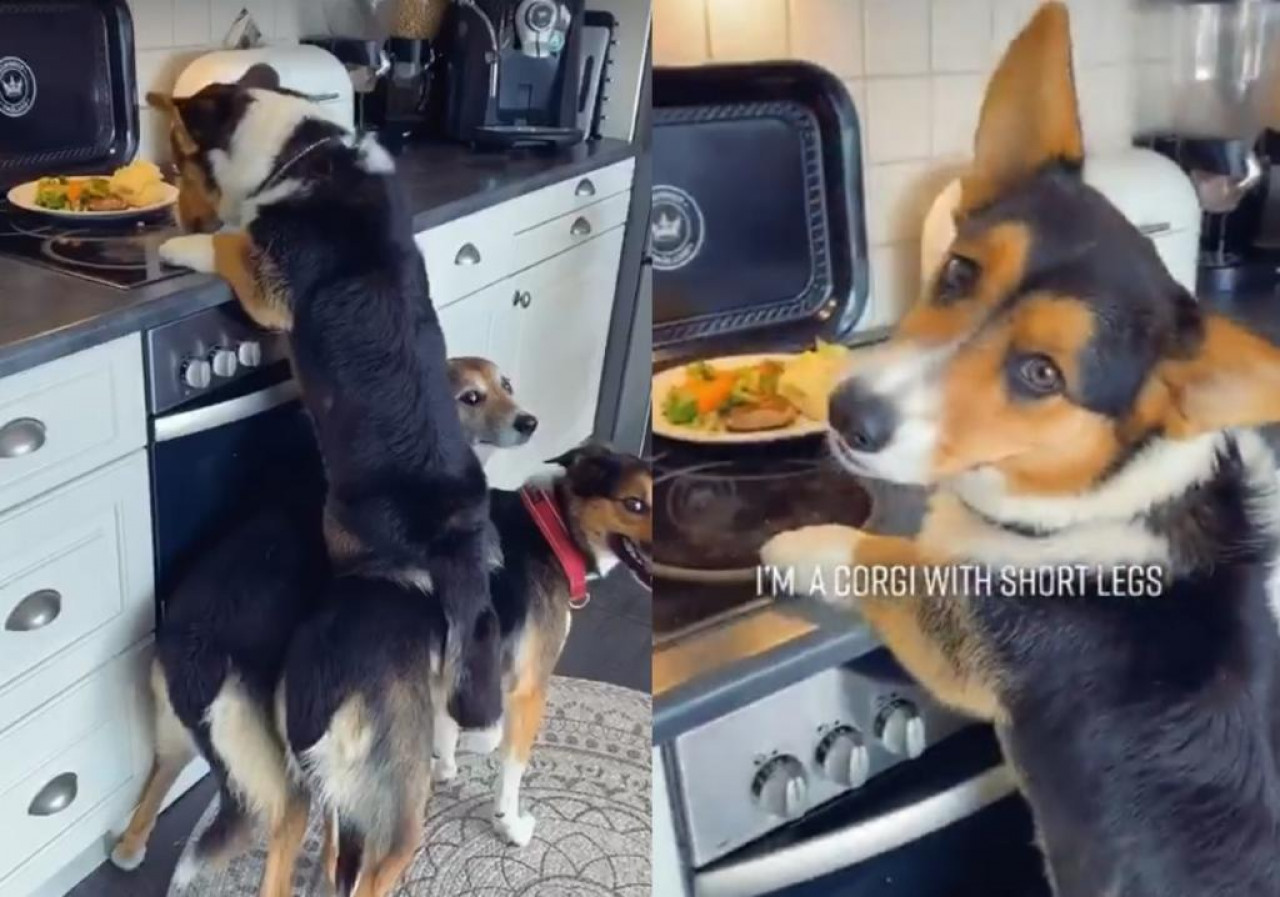 Un video compartido recientemente en redes por la entrenadora profesional de perros Line Fatland Froystad, muestra a “Hugo”, un perro de raza corgie, trabajando en equipo con sus "hermanos" para robar de comida de una cocina en Noruega.