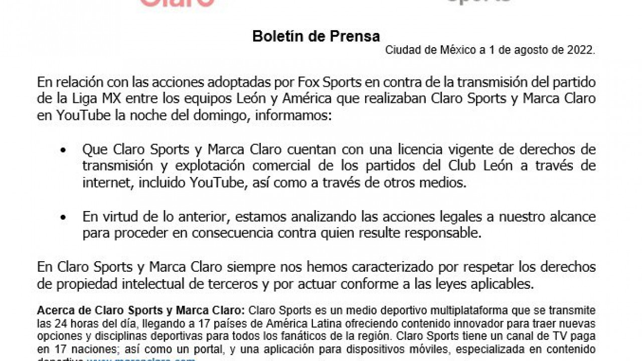 Amaga Claro Sports con acciones legales contra Fox Sports