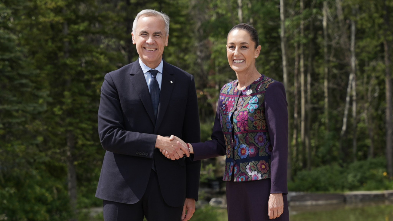Presidenta de México se reúne con el primer ministro de Canadá en la G7