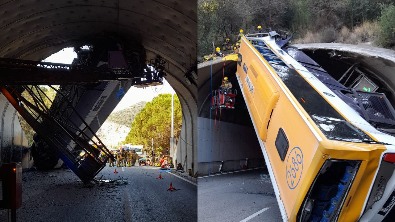 Camión que quedó colgado de un túnel deja tres personas heridas