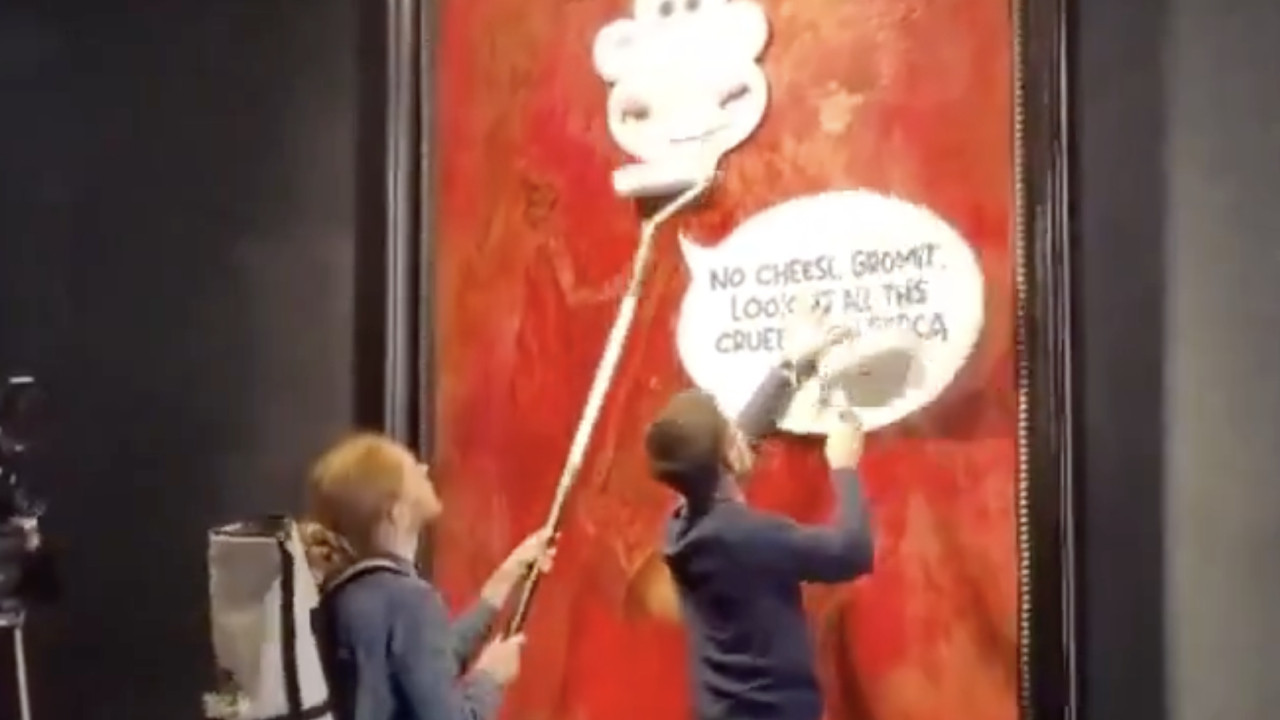 Vandalizan retrato de Carlos III en protesta por trato a animales