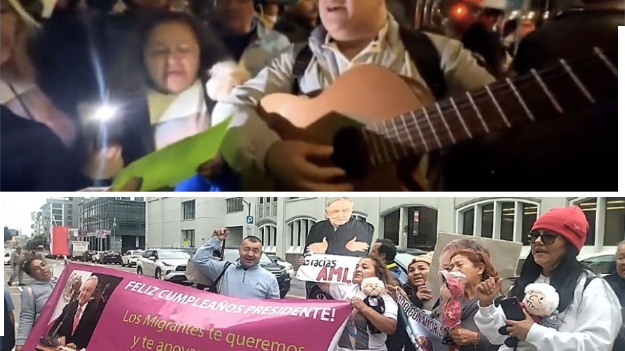 Simpatizantes de Andrés Manuel le cantan en San Francisco