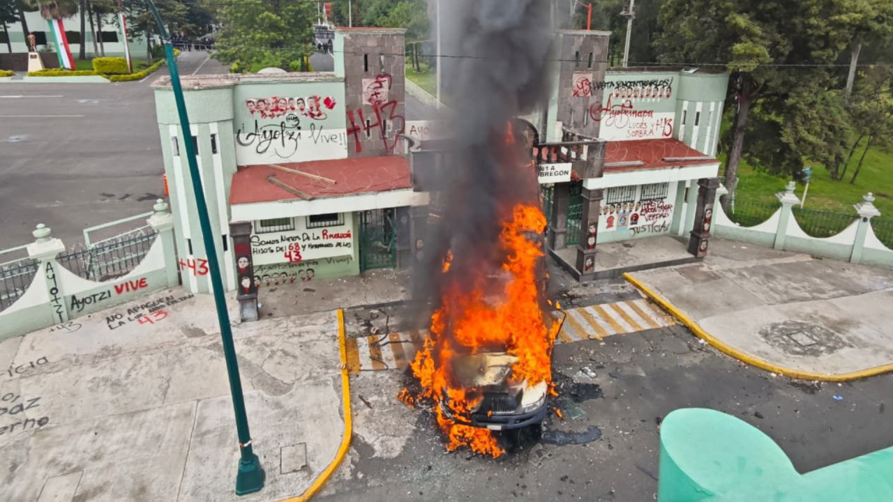 Normalistas incendian camión repartidos frente a Campo Militar 1