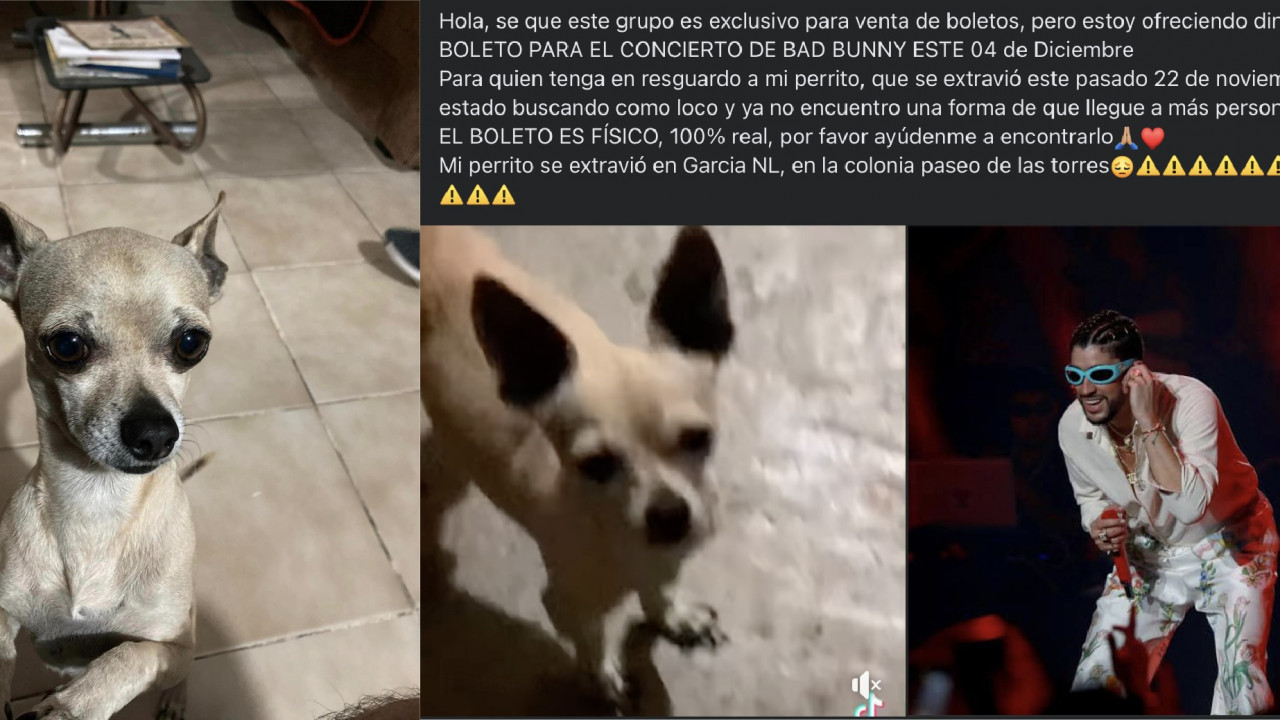Ofrece boleto para Bad Bunny para recuperar a su perrito