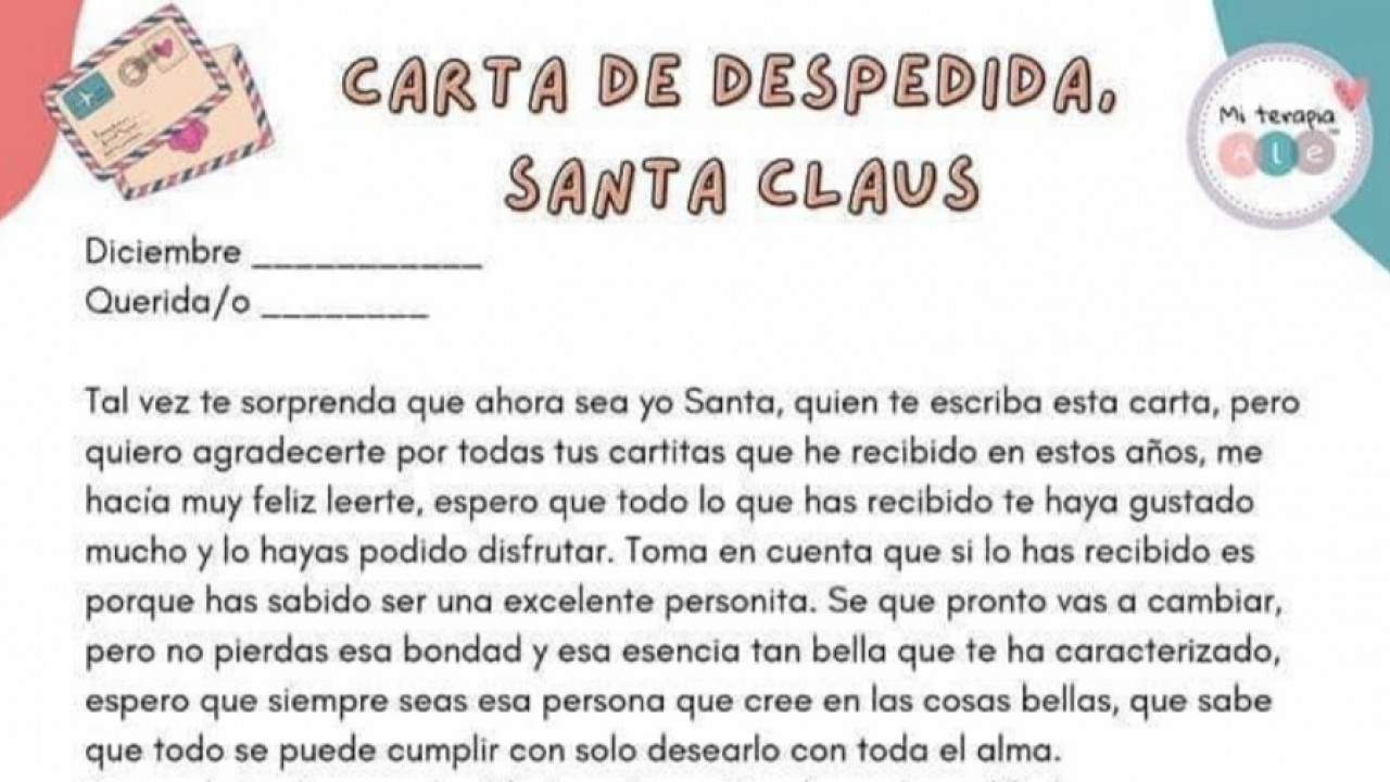 Psicóloga comparte carta para decir adiós a Santa