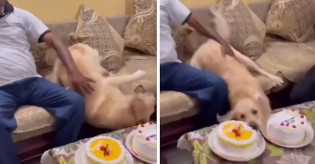 VIDEO. Perrita finge caerse para robar pastel