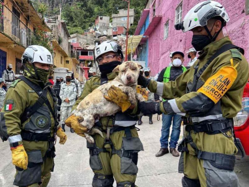Rescatan perrita de entre escombros de Cerro Chiquihuite
