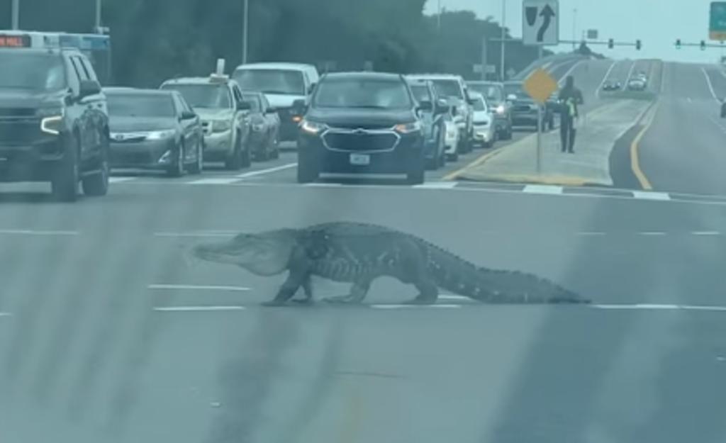 VIDEO. Tráfico se detiene para que caimán cruce carretera
