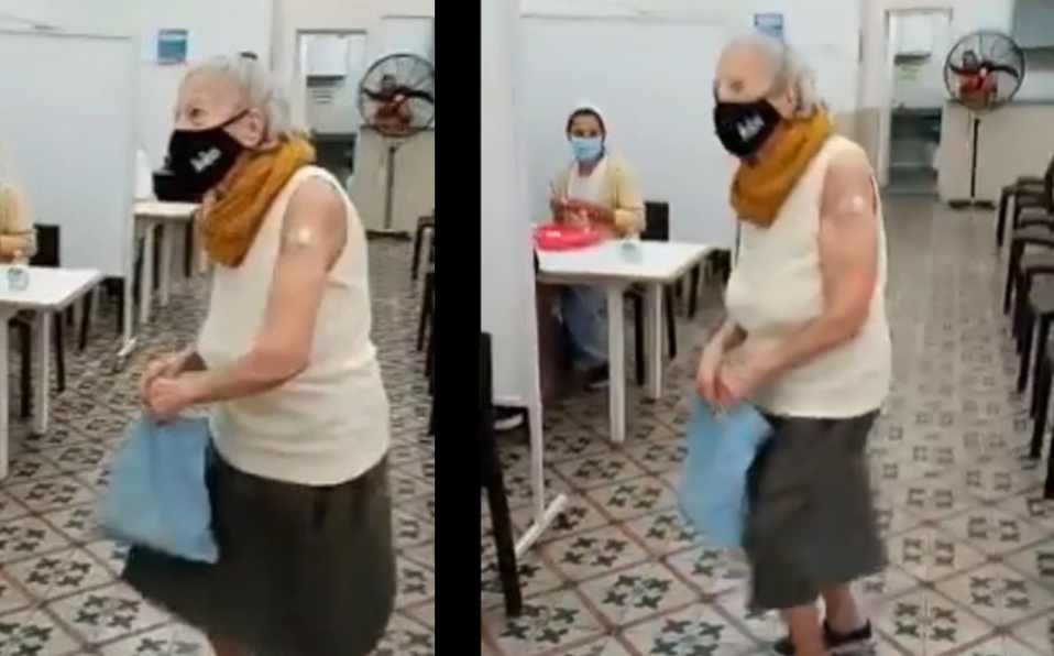 Mujer argentina baila al recibir vacuna contra Covid-19