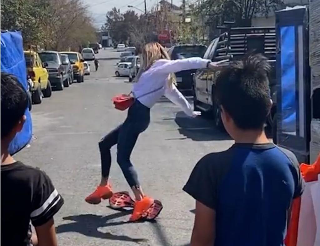 VIDEO. Con todo y tenis “fosfo”, Mariana Rodríguez sufre caída
