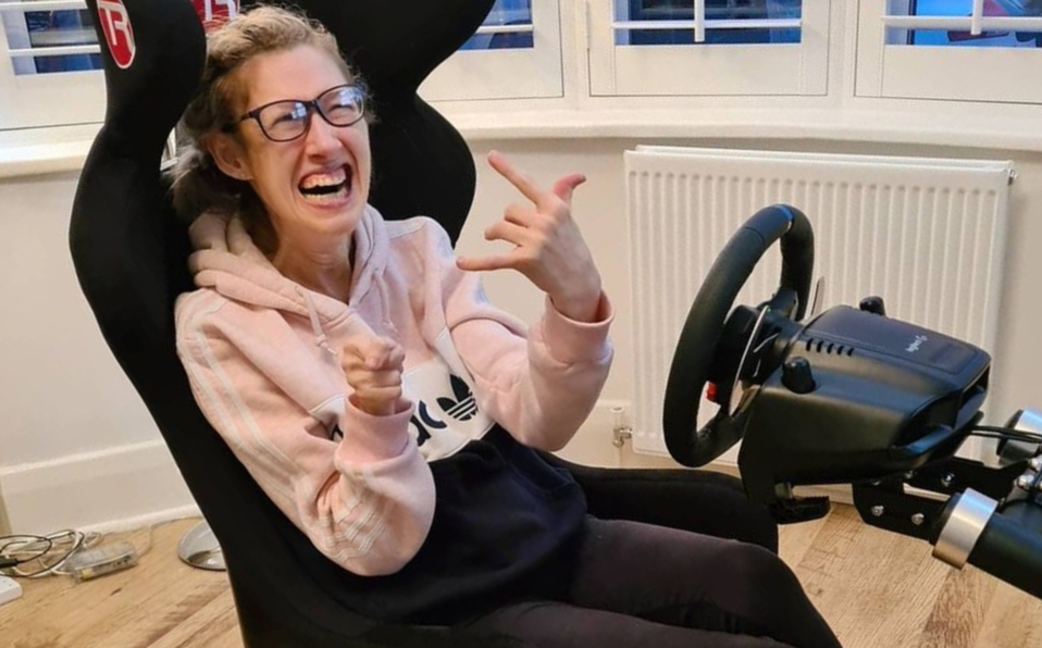 VIDEO. Mujer con parálisis cerebral recibe simulador de carreras y se emociona