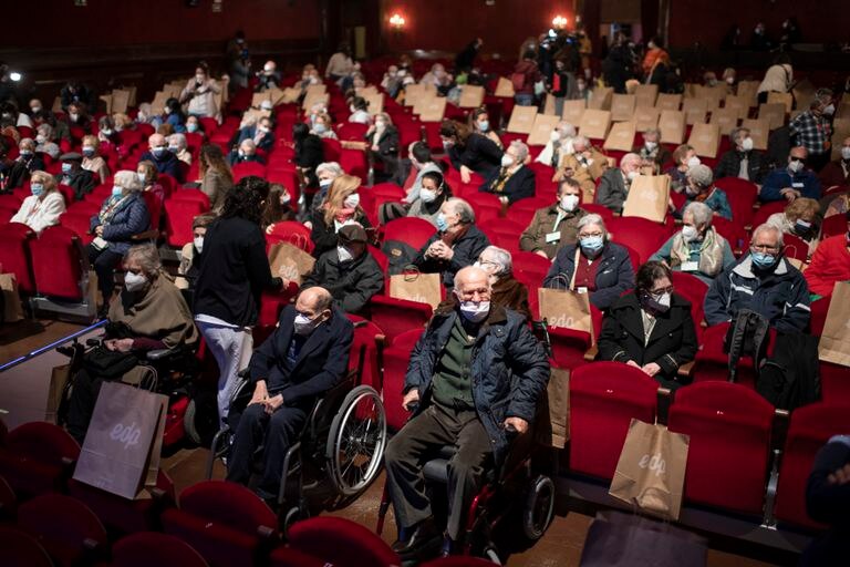 Tras un año confinados, adultos mayores vacunados van al teatro