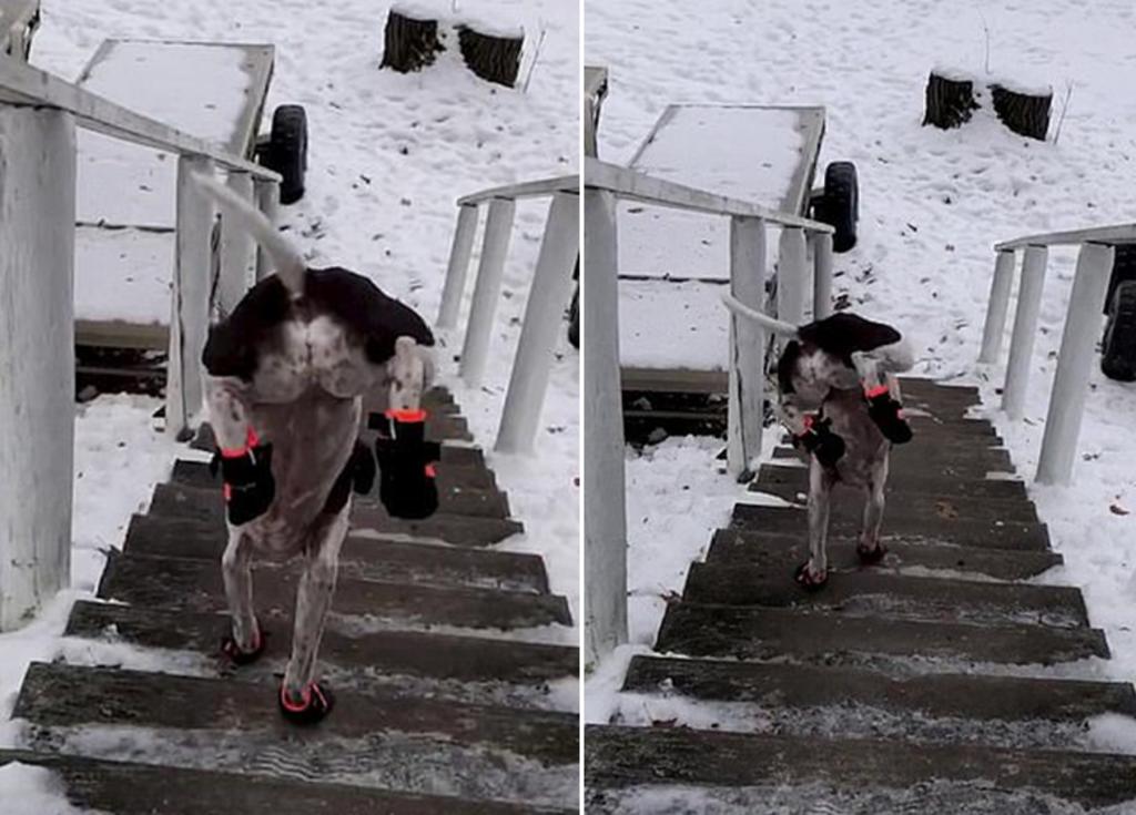 VIDEO. Perrita sólo baja escaleras en dos patas