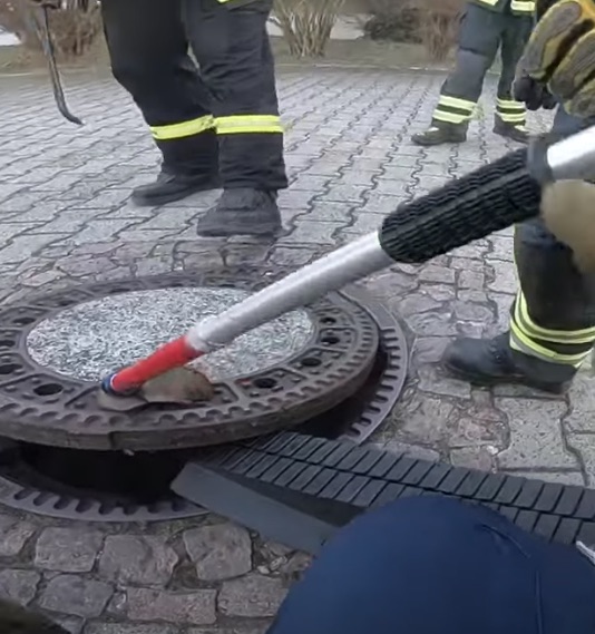 VIDEO: Rata gorda se atora en alcantarilla y bomberos la auxilian