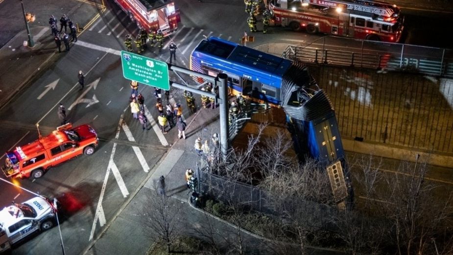 Autobús queda colgado en puente en Nueva York