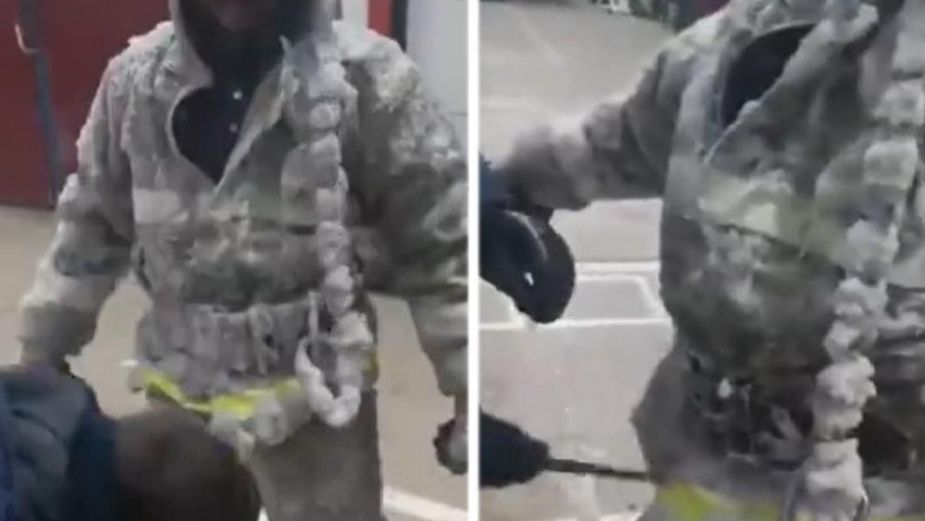 VIDEO. Bomberos apagan incendio y acaban cubiertos de hielo