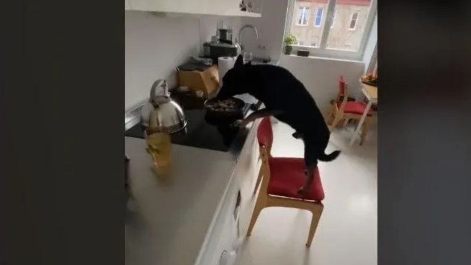 Ingenioso lomito arrastra silla para alcanzar comida en estufa