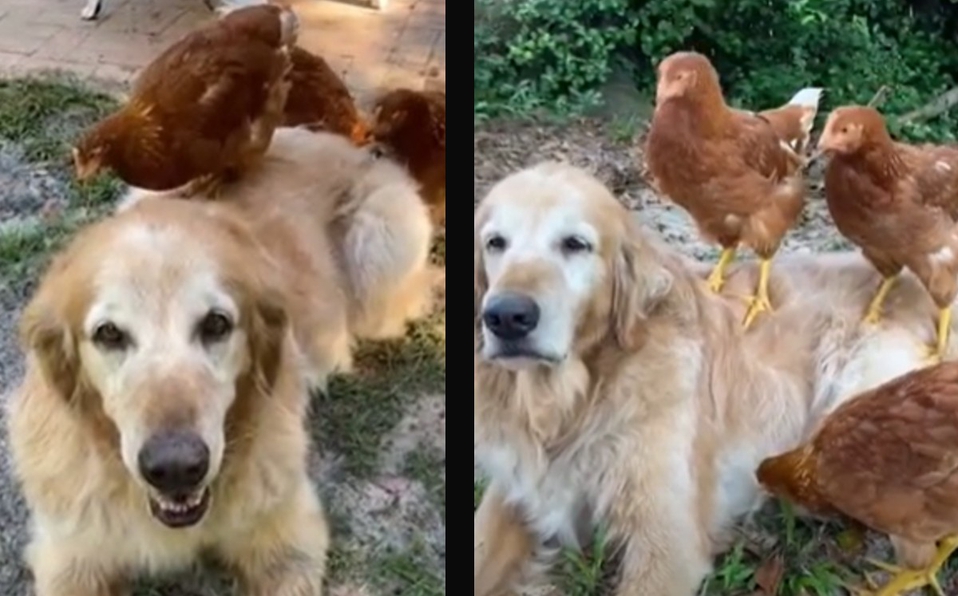 VIDEO. Lomito conquista redes por amistad con gallinas