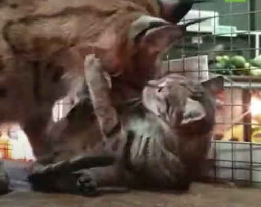 Lince siberiano adopta gatito