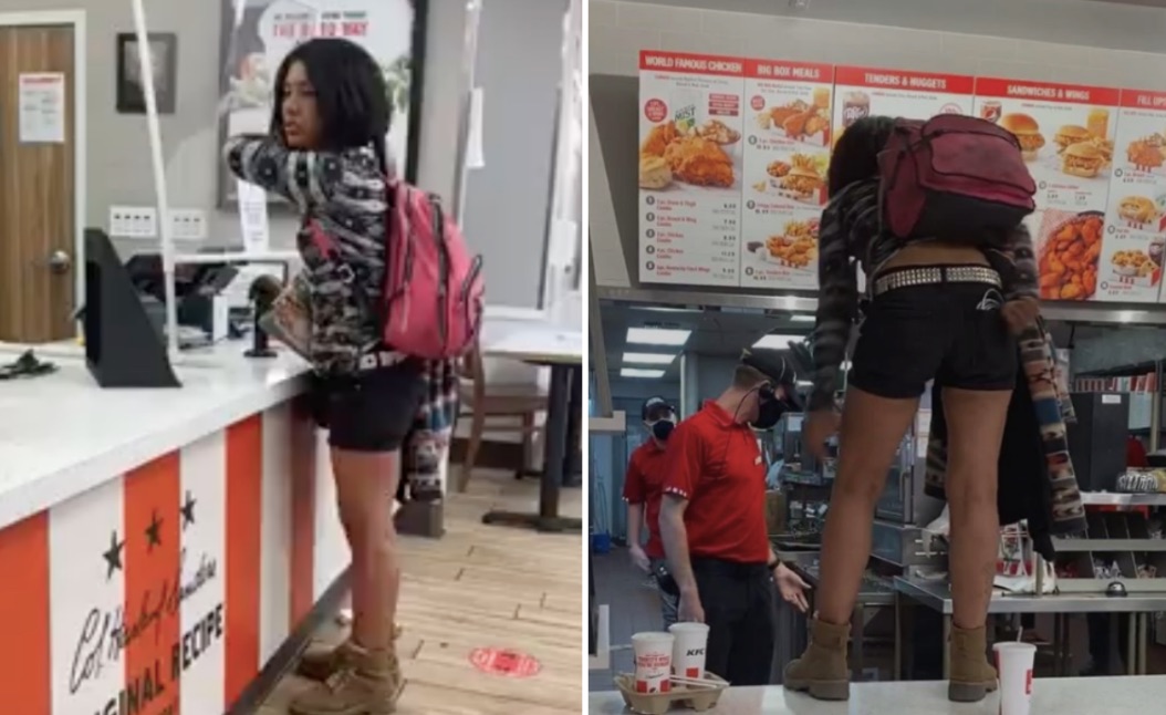 Mujer se niega a usar cubrebocas en KFC y hace “berrinche”