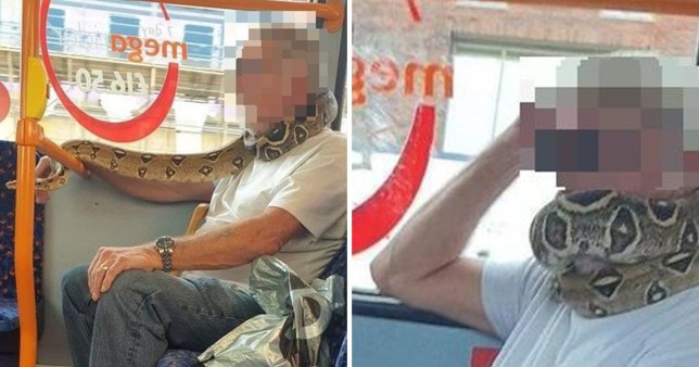 En vez de cubrebocas, hombre lleva serpiente en la cara para cubrirse