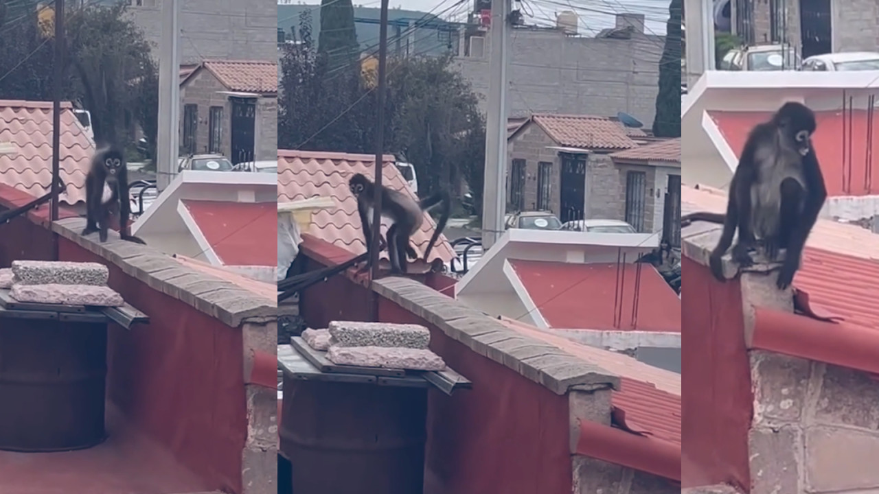 Rescatan a mono araña que deambulaba en techos de Edomex