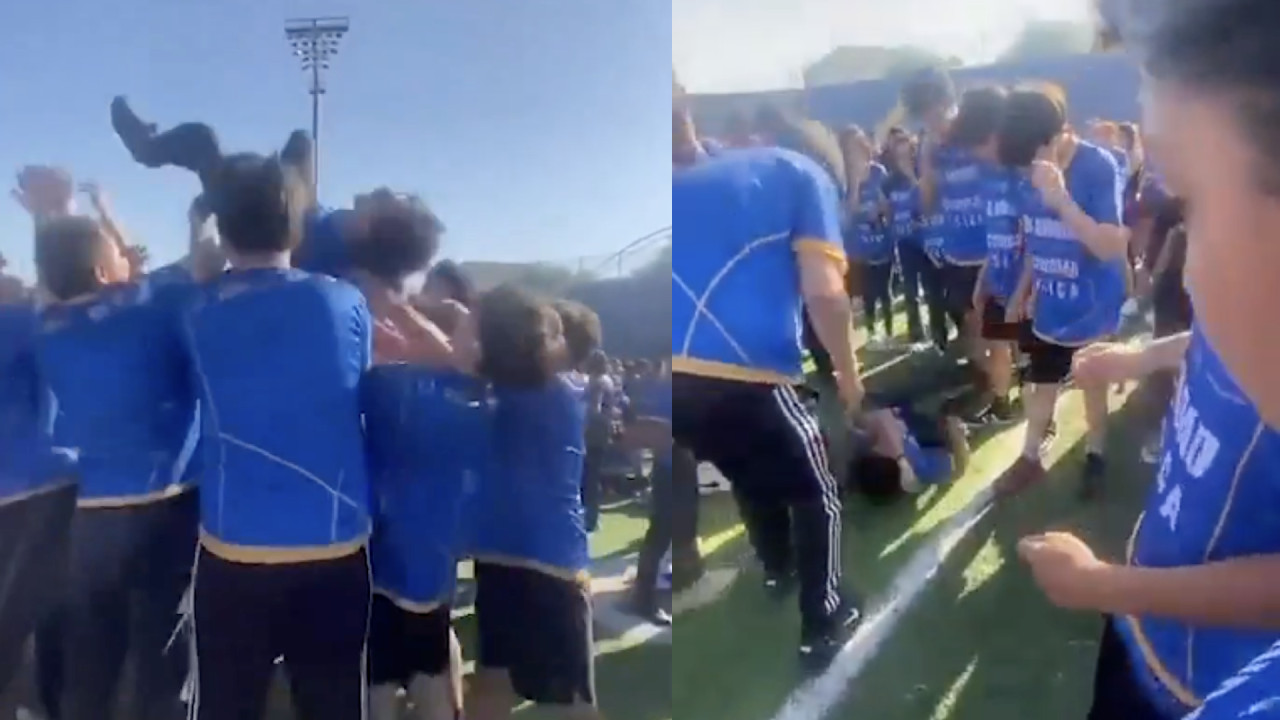 Estudiantes de la UANL arrojan a compañero al aire y lo dejan caer
