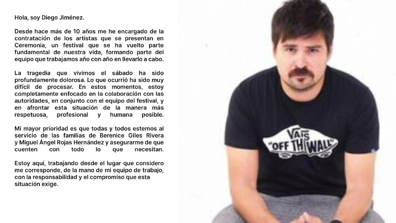 Reaparece organizador de festival Ceremonia tras sospechas de fuga